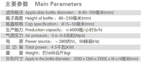 適用于不同規(guī)格玻璃瓶及塑料瓶的外蓋(含螺紋蓋)自動旋合,該機技術先進、性能可靠、產能高。